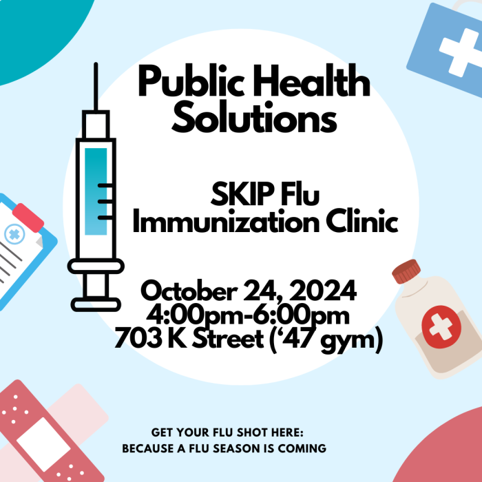 The SKiP Flu Shot Clinic will be held at the District Office Gym this year.